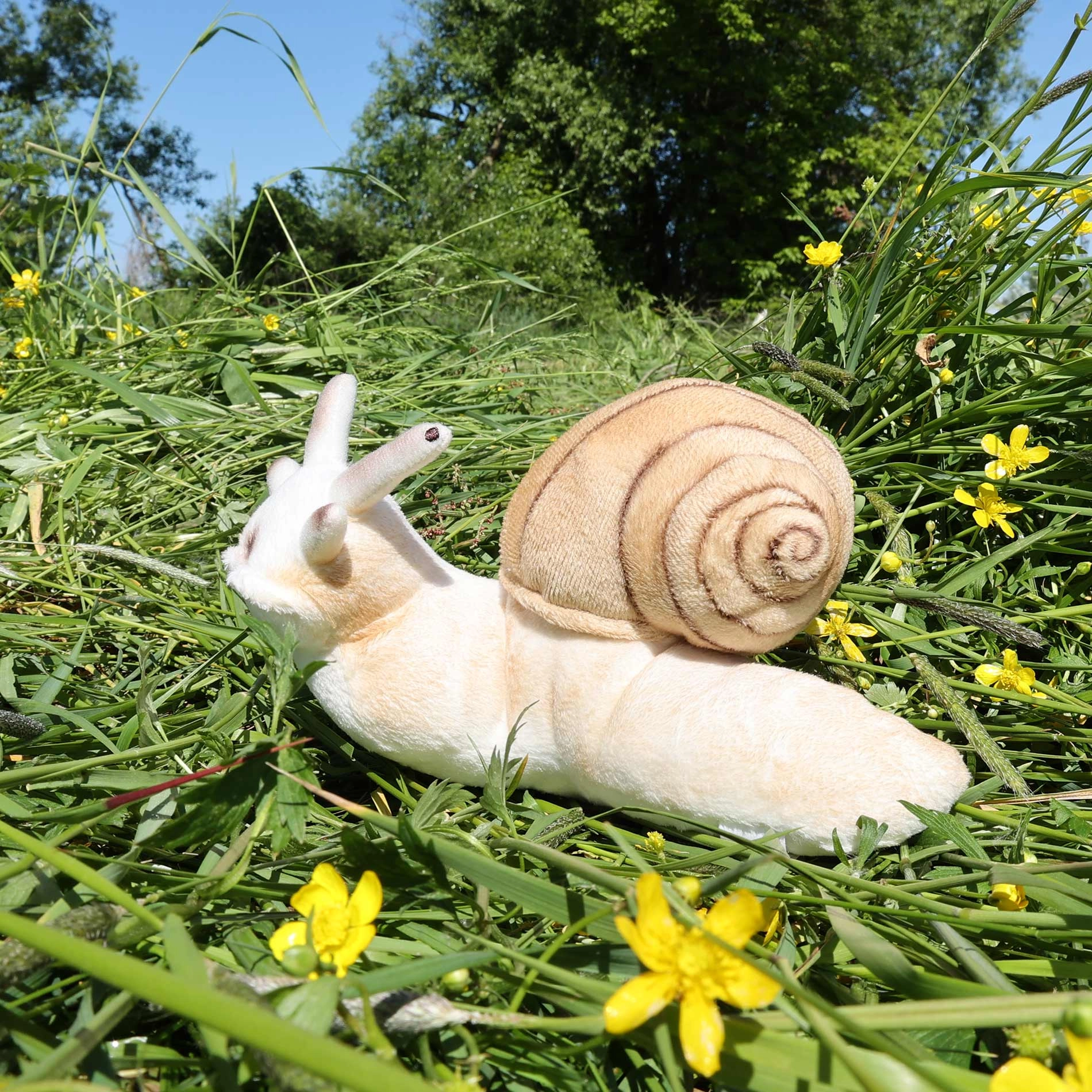 Denne bløde plyssnegl udmærker sig ved sin detaljerede udførelse og behagelige materiale, som indbyder til kram. Takket være håndlavet udførelse virker den naturtro og ledsager trygt selv de mindste børn.