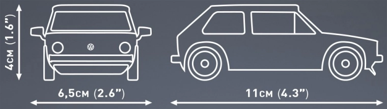 Oplev det ikoniske design, der definerede en ny æra for kompakte biler. Modellen af Volkswagen Golf første generation fra COBI gengiver trofast de karakteristiske kantede linjer af designeren Giorgetto Giugiaro, de kompakte proportioner og pionerånden med forhjulstræk og tidens moderne teknik.