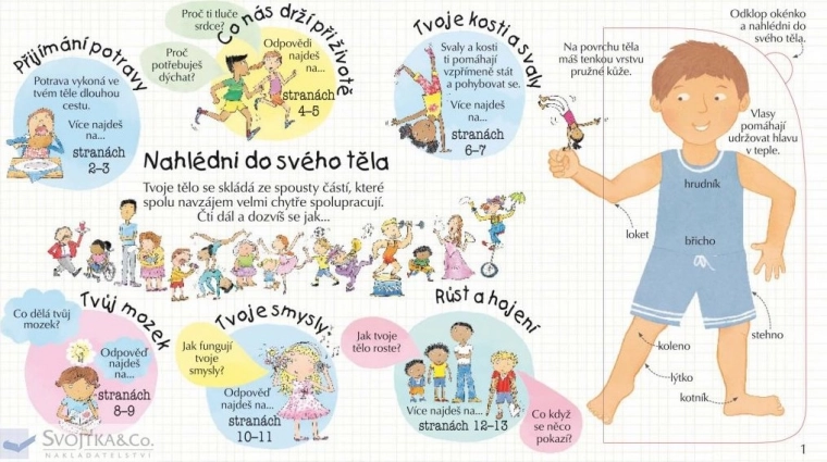 Børneleksikonet Kig ind i din krop med over 100 låger. Forklarer på en sjov måde knogler, blod, hjerte, hjerne og muskler. Leporello fra Svojtka & Co.