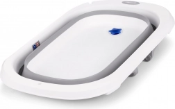 Dette kompakte badekar er designet til sikker og behagelig badning af babyer. Takket være den stabile konstruktion, den skridsikre bund og den medfølgende badepude giver det støtte og komfort selv for de mindste. Den sammenklappelige mekanisme gør det nemt at opbevare i skuffe, skab eller hænge på væggen.