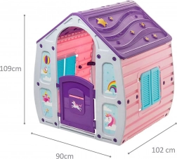 Legehuset Magical House Unicorn er det ideelle sted til kreativ leg – med glade enhjørninge- og regnbuemotiver, der understøtter fantasi og skabelse af egne historier. Takket være den stabile plastkonstruktion egner det sig både til indendørs og udendørs brug og giver børn deres eget magiske hjørne.