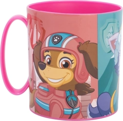 Giv børnene en munter start på dagen med det lyserøde krus med de populære figurer fra PAW PATROL. Takket være den lette konstruktion og behagelige form er det nemt at holde for børn, det robuste materiale tåler daglig brug og mindre fald, og mikrobølgeovnen muliggør hurtig opvarmning af morgenmad eller drikke.