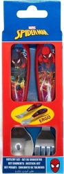 Et praktisk sæt børnebestik i rustfrit stål hjælper dine børn med at tage de første skridt mod at spise selv. Skeen og gaflen har sikre, afrundede former og ligger godt i selv små hænder. Det originale dekormotiv på håndtagene med SPIDER-MAN begejstrer børn og øger lysten til at spise.