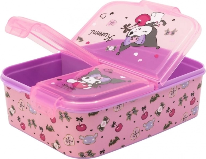 Holdbar STOR multi-boks til madpakke KUROMI med 3 rum, fri for BPA og med officiel licens. Ideel til skole, legeplads og udflugter.