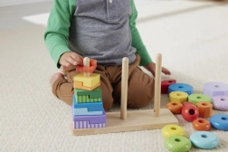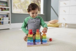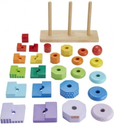 Træsorteringstårnet fra FISHER-PRICE tilbyder tre separate tårne med forskellige former, som børn trækker ned over pinde på den robuste træbase. Med de farverige dele øver børn sortering, stabling og logisk tænkning – alt sammen gennem leg.