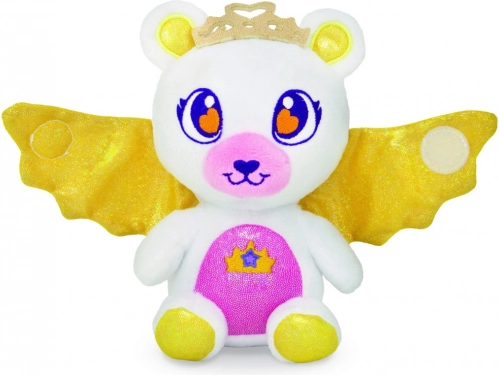 Hver bamse har en blid, silkeblød overflade, gylden krone og glitrende vinger – ideel til kram og fantasifuld leg.
