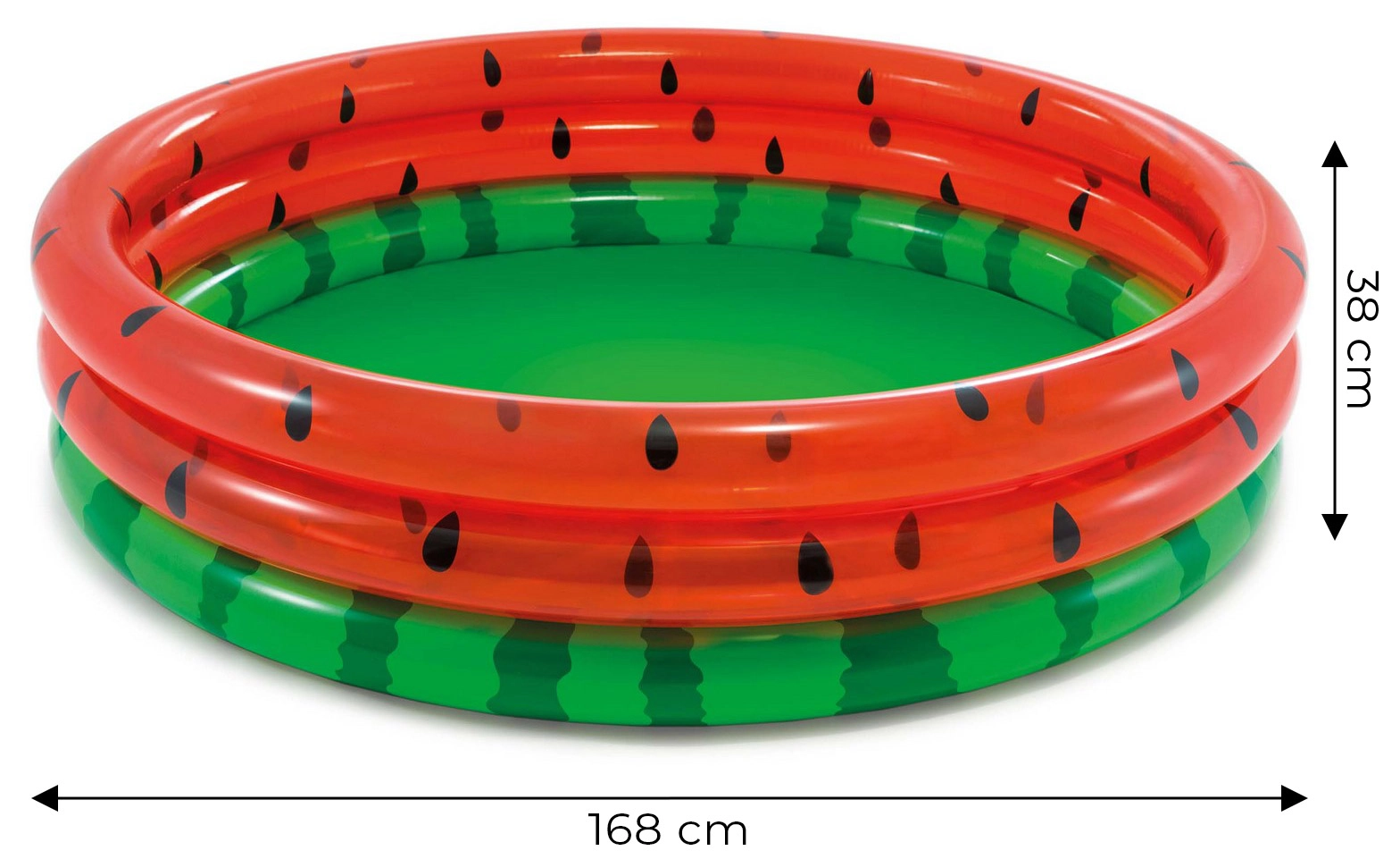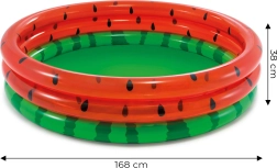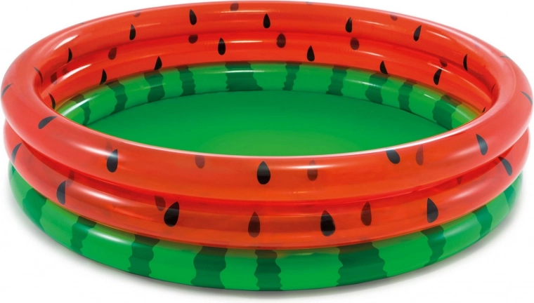 Den stilfulde pool i looket af en saftig vandmelon giver øjeblikkelig sommerstemning i haven. Takket være tre oppustelige ringe af kvalitets-PVC (0,23/0,18 mm) er den stabil, komfortabel og modstandsdygtig over for almindelig slitage. Vandstandshøjde 18 cm er venlig for mindre børn og giver forældre en bedre tryghedsfornemmelse.