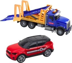 Sættet inkluderer to sportsvogne, der nemt kan lastes på og losses fra traileren. Transportøren har bevægelige dele, som troværdigt efterligner funktionerne fra et rigtigt køretøj.