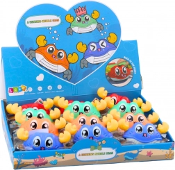 Med fire forskellige farvevarianter kan legetøjet nemt kombineres med barnets øvrige legetøj. Hver æske indeholder 12 krabber, som sælges enkeltvis.