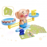 I pakken finder du flodhestevægten, 10 små flodheste og 10 farvede cifre samt kort med opgaver til en hurtig start. Legen udvikler finmotorik, kreativitet og støtter samarbejde ved fælles problemløsning.
