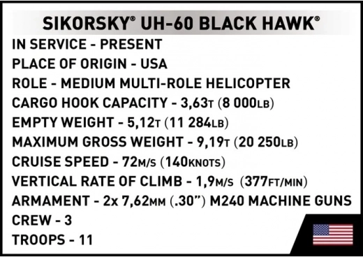 Helikoptermodellen Sikorsky UH-60 Black Hawk er udviklet under officiel licens fra Sikorsky Aircraft Corporation. Denne berømte militærhelikopter er kendt for sin pålidelighed, mobilitet og evne til at operere under ekstreme forhold.