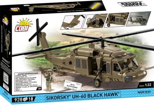 Byg den ikoniske helikopter Sikorsky UH-60 Black Hawk fra COBI med 928 klodser, ideel til fans af militærhistorie.