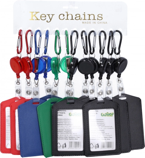 Navneskiltet med rulletræk gør det nemt at trække ud og rulle ind igen, mens karabinhagen giver en sikker mulighed for fastgørelse til forskellige genstande.