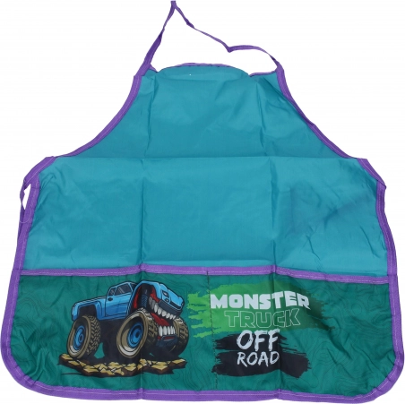 Børn kan vælge mellem et bredt udvalg af designs: fodbold, kat, gamer, monstertruck, dino, pindsvin eller hund + kat. Forklædet passer til skole, fritidsaktiviteter og hjemmemaling.