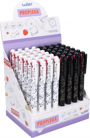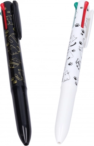 Sød multifarvet kuglepen med kattemotiv, der kombinerer fire blækfarver i ét hus for nem og hurtig skift. Ideel til skole, kontor og på farten takket være den fine spids på 0,5 mm og behagelig, udtværingsfri skrivning. Vælg farve med et tryk – 4 farver i én kuglepen sparer både plads og tid.