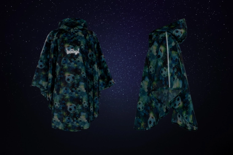 Oplev pålidelig beskyttelse mod regn i et legende fodbolddesign. BAAGL børneponcho er let, kompakt og vandtæt, så den passer perfekt til skole, legeplads og udflugter. Hætte med skygge beskytter ansigtet mod dråber, og designet med hexagonmønstre og bolde vil begejstre børn.