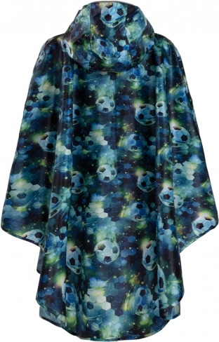 Stilfuldt børne-regnponcho med hætte og skygge til hverdag i skole og på ture. Det lette, vandtætte materiale sikrer komfort i regnvejr, reflekselementer øger sikkerheden, og den gennemtænkte pasform gør det behageligt at bære ponchoen selv over en rygsæk. Medfølger en praktisk snørepose der matcher designet med fodboldmotiv.