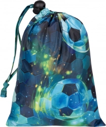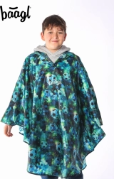 Leder du efter en let og slidstærk regnponcho til børn til både skole og udflugter? Baagl børneponchoen med fodboldmønster i blå-grønne nuancer sørger for, at dit barn forbliver tørt selv under uventede byger. Takket være det løse snit er den let at tage på og behagelig at bære udenpå skoletasken.