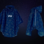 Sikkerheden forbedres af reflekterende elementer for bedre synlighed i skumring. Det smarte, bredere snit gør det muligt at bære ponchoen komfortabelt over en skoletaske eller rygsæk. Efter brug kan den hurtigt pakkes i den medfølgende snørepose i matchende design – perfekt til rejser og udflugter.