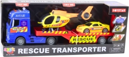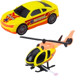 Sættet indeholder tre realistiske køretøjer: lastbil, helikopter og sportsredningsvogn.