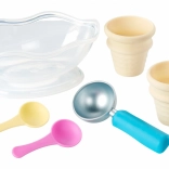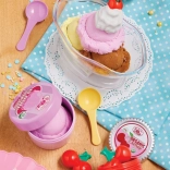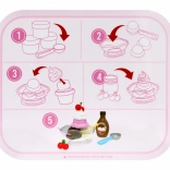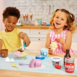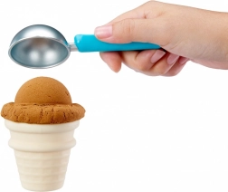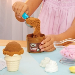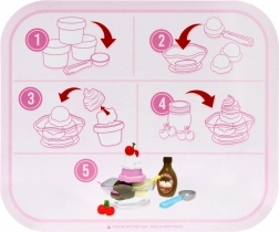 Sættet indeholder særlig modellérsand til nem formning af kugler, et opskriftskort til trin-for-trin-læring og et rigt udvalg af tilbehør til realistisk is-tilberedning i legekøkkenet.