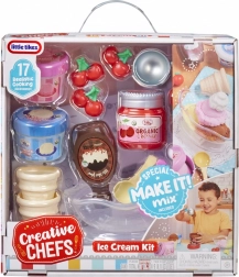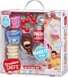 Opdag det sjove is-sæt til børn LITTLE TIKES Creative Chefs, som understøtter kreativitet, rolleleg og læring gennem leg. Takket være 17 realistiske tilbehør, tre “smage” (vanilje, chokolade, jordbær) og genanvendelig modellérsand kan børn “øse” kugler, pynte og servere deres yndlingsdesserter efter visuelle opskriftskort.