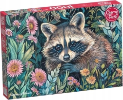 Motivet med vaskebjørn i blomster udmærker sig ved mættede farver og detaljeret udførelse. Kvalitetstryk og stærk karton sikrer lang holdbarhed og gentagen samling uden tab af form.