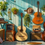 - Motiv: musikinstrumenter – markante farver og fine detaljer