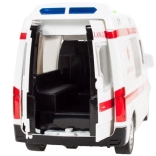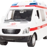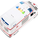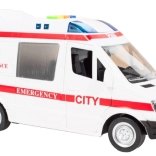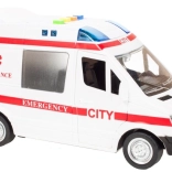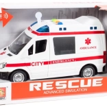 En realistisk legetøjsambulance i skala 1:16 giver børn en autentisk oplevelse af en redningsmission. Når man trykker på knapperne på taget, tændes udrykningsblinkene, og lyde af motor, sirene og horn høres, hvilket gør legen endnu mere spændende.