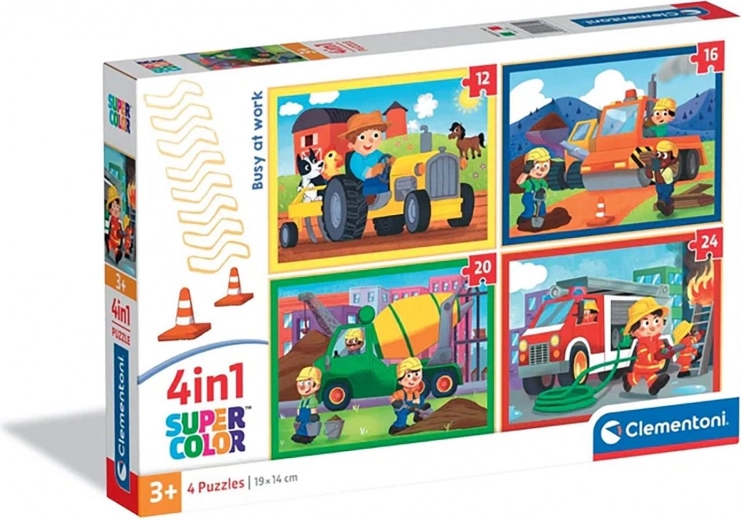 Opdag et sjovt sæt med fire puslespil med temaet “Travlt på arbejde”, som på legende vis introducerer børn til arbejdets verden. Sættet indeholder fire motiver med stigende sværhedsgrad – 12, 16, 20 og 24 brikker – ideelt til gradvis udvikling af færdigheder. Hvert færdigt puslespil har en kompakt størrelse på ca. 19 × 14 cm, perfekt til leg derhjemme og på farten.