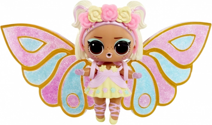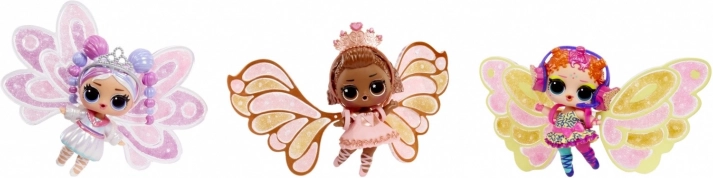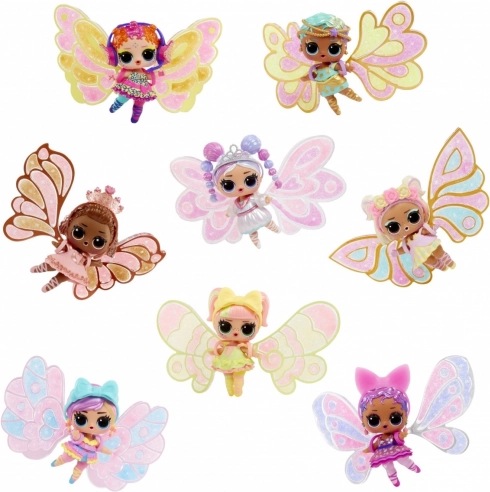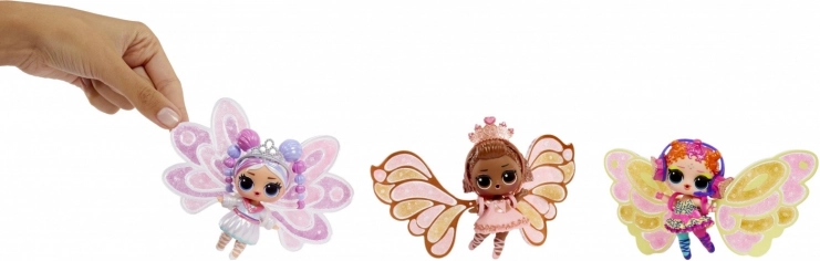 - L.O.L. Surprise Fairy Tots dukke, et par vinger, 3 farver “fe-støv”, pipette, outfit og tilbehør, kugle/stander
