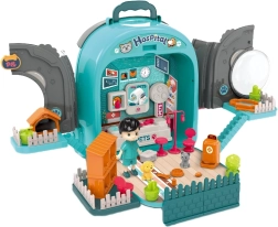 - 3-i-1: rygsæk, veterinærklinik med lille hus, plejeplads til hunden