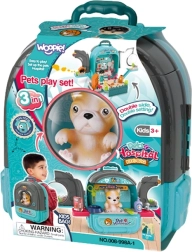Opdag den kreative verden af dyrepleje med det bærbare WOOPIE 3-i-1 sæt. Den praktiske rygsæk bliver ved åbning til en fuldt udstyret veterinærklinik med lille hus og have, hvor børn kan undersøge, behandle og forkæle deres hundevenner. Med det rige tilbehør er legen fangende, realistisk og pædagogisk.
