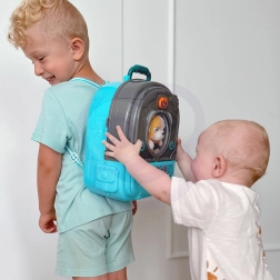 Let bærbar kuffert/rygsæk, som ved åbning bliver til et legeområde med lille hus og have. Børn kan lege hvor som helst og have alt samlet ét sted.