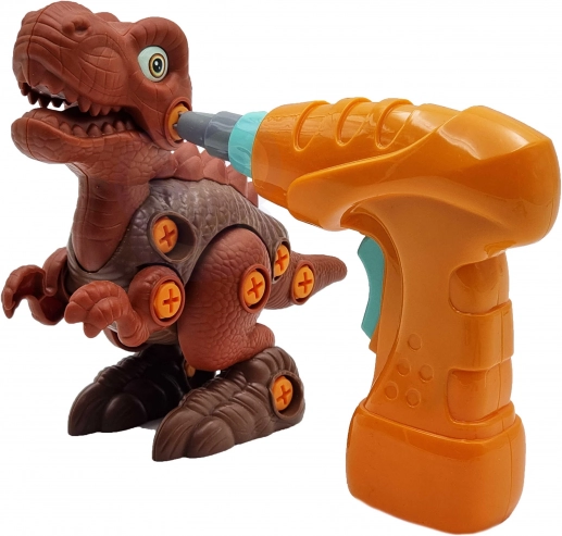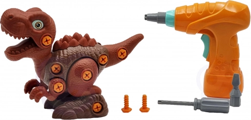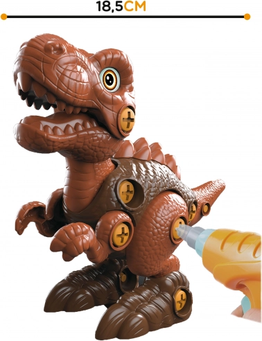 Der medfølger en elektrisk boremaskine med funktion til både tilspænding og løsning af skruer – børn kan nemt samle og skille deres T‑Rex ad.