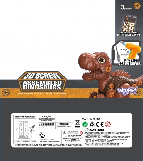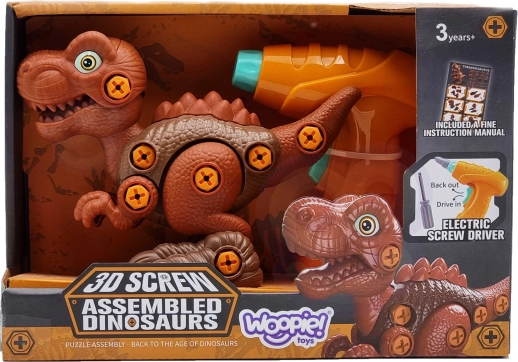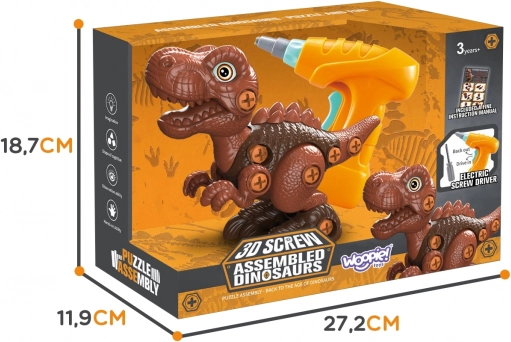 Byg din egen dinosaur! Det interaktive WOOPIE-sæt indeholder 31 dele, inklusive børneskruetrækker og elektrisk boremaskine med tovejs-funktion til skruning og afskruning. Efter samling har T‑Rex bevægelig hoved, hale og lemmer, og det udvikler finmotorik, kreativitet og fantasi hos små gør-det-selv-fans.