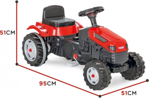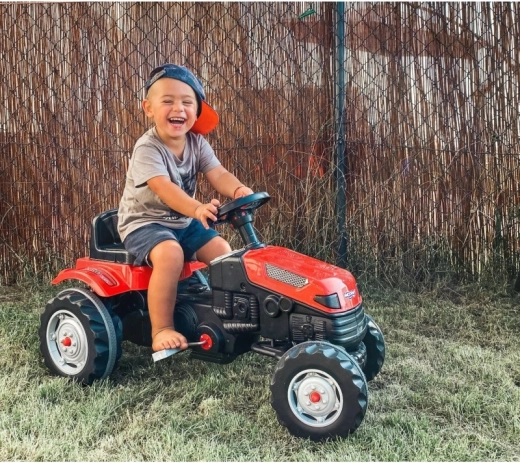 For maksimal komfort har traktoren et 6-trins justerbart sæde (frem–tilbage), horn på rattet og kædetræk på baghjulet for jævn kraft. Den forreste drejeaksel gør manøvrering lettere, og trækkrogen gør det muligt at tilkoble trailer eller andet tilbehør for endnu flere lege-scenarier.