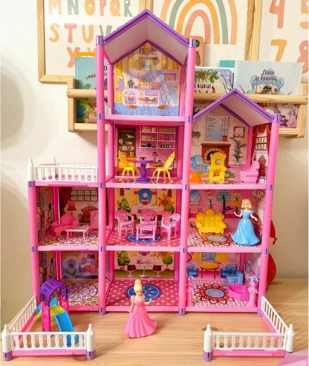 Sættet indeholder 194 dele, herunder elementer til gør-det-selv montering, møbler, dekorationer og figurer. Dukkehuset er fremstillet af sikre, holdbare og farverige materialer, så det er ideelt til børn fra 3 år og kan holde til mange timers leg.