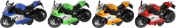 Fås i flere attraktive farver med racertryk og detaljeret udførelse af kåbe, hjul og udstødning. Den kompakte størrelse gør den let at have i lommen eller rygsækken, så den er perfekt både hjemme og på farten.