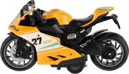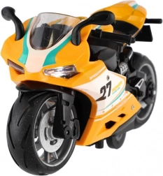 Denne plast-vej-motorcykel kombinerer dynamisk design med nem betjening. Træk den blot tilbage og slip – motorcyklen sætter hurtigt i gang og giver børnene actionfyldt leg. Integreret lys og lyd øger realismen, så hver tur føles som et rigtigt løb.