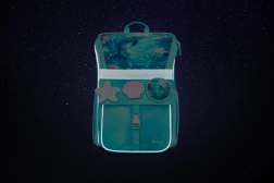 Det specielle flip-åbningssystem gør det lettere at få adgang til hjælpemidler, og det indre rum suppleres med en elastik, der holder indholdet tæt på kroppens tyngdepunkt. Originale udskiftelige pin-badges gør det muligt for barnet at personalisere rygsækkens udseende efter humør.
