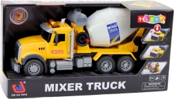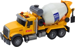 Den gule børne-betonblander vil glæde alle små byggefolk: den har en roterende tromle, lys- og lydeffekter (horn, motor, bakning), er lavet af holdbar plast og fungerer med det samme – batterier medfølger.