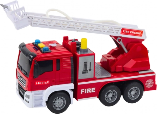 - brandbil med vandsprøjtefunktion, udtrækkelig og drejbar stige, tank og slange, 3 AG13-batterier
