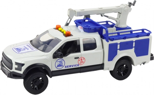 En realistisk servicebil med en bevægelig kran og lys- og lydeffekter vil begejstre alle små fans af arbejds køretøjer. Detaljeret udførelse, blinkende advarselslygter samt lyde af motor, horn og bakning gør legen endnu mere realistisk. Den robuste konstruktion og intuitiv knapbetjening er ideel til temaleg og udvikling af kreativitet.