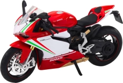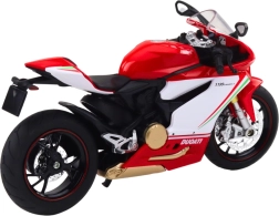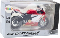 Denne rød‑hvide model, inspireret af racermotorcykler, vil glæde børn, samlere og motorsportsentusiaster. Den præcise udførelse, den robuste metalkarosseri og de funktionelle elementer gør den til et attraktivt supplement til samlingen og en iøjnefaldende dekoration.