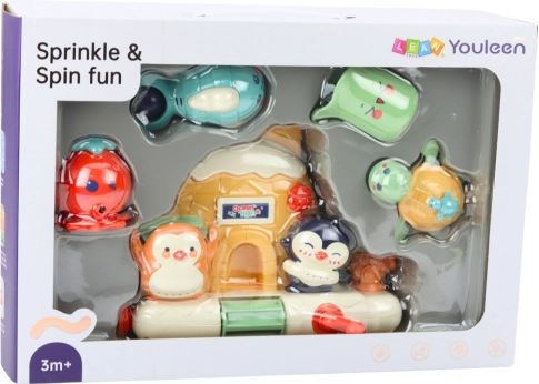 - interaktivt vandhus, 5 havdyrfigurer, drejehjul og dyser, farverig emballage