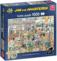 Puslespil fra Jan van Haasteren byder på timers sjov, hvor man opdager hver eneste joke og detalje. Kunstneren er kendt for at inkludere hajfinde og surrealistiske hænder i sine tegninger, sammen med andre traditionelle elementer som tandprotese, Sankt Nikolaus og hans eget portræt.