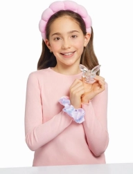 Der medfølger en sommerfugl-klemme til hurtig fastgørelse og en puffy hårbøjle, der holder håret væk fra ansigtet under afrensning eller lektier. De farverige pasteller vil glæde både yngre og ældre frisure-entusiaster.