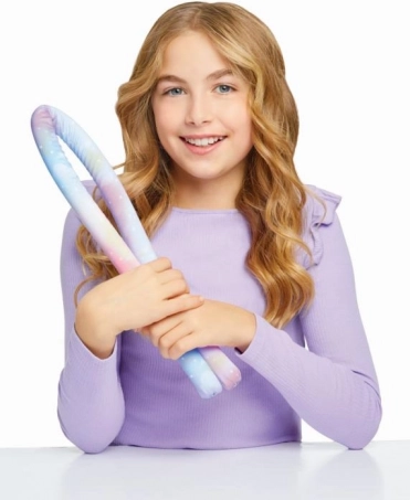 Den bløde tekstilkrøllestang skaber naturlige bølger uden glattejern og føntørrer. Vikl blot hårlokkerne om stangen, fastgør med scrunchies, og lad den virke.