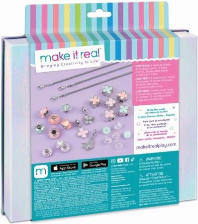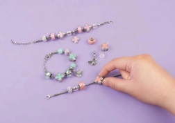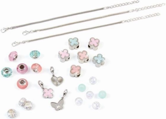 Oplev glæden ved DIY-smykker og design tre originale armbånd efter din egen fantasi. Kombinér blide pastelfarver, funklende elementer og søde motiver som hjerter, blomster og sommerfugle. Nem lukning og udskiftelige vedhæng gør det let hurtigt at ændre stil efter humør og outfit.